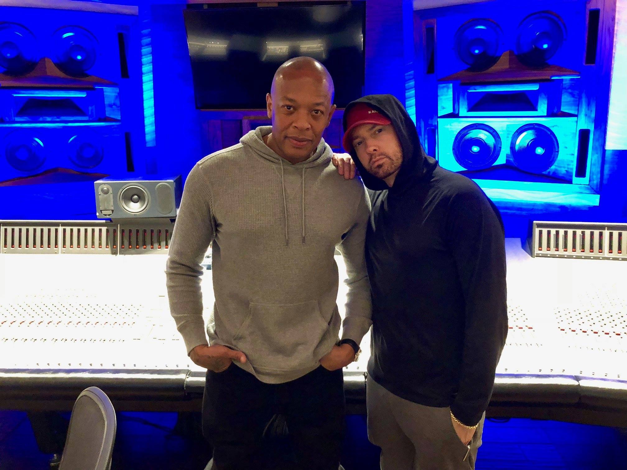 Eminem também postou uma foto sua da sessão com o Dr. Dre no estúdio, legendando a foto com “Still Aftermath!”