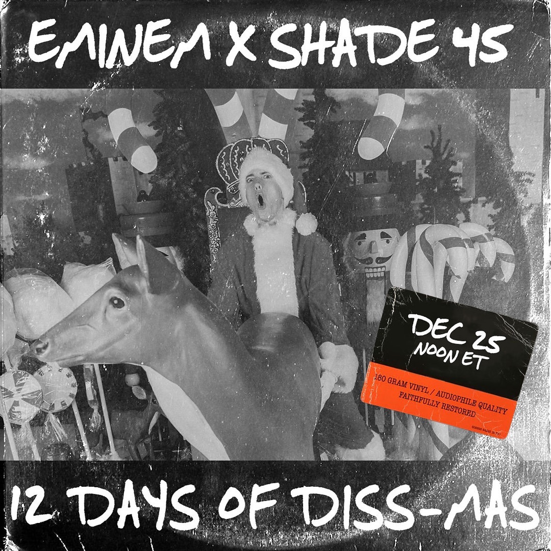 “Ho Ho Ho Feliz Diss-Mas! Se liguem na @Shade45 amanhã ao meio dia – vou estar fazendo uma contagem regressiva das nossas 12 faixas diss favoritas de todos os tempos.”