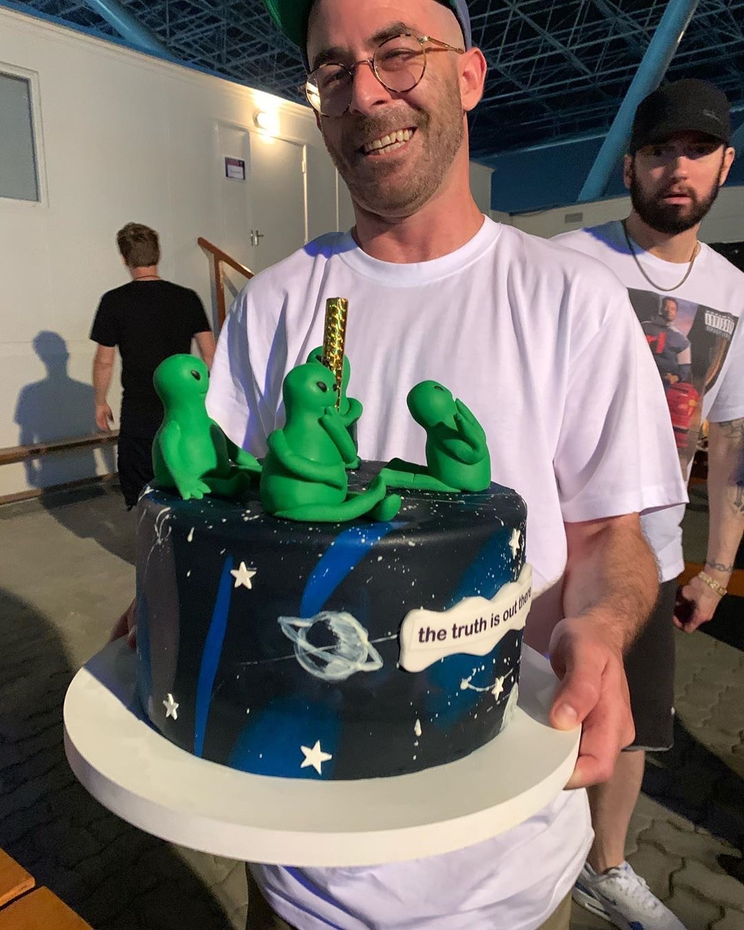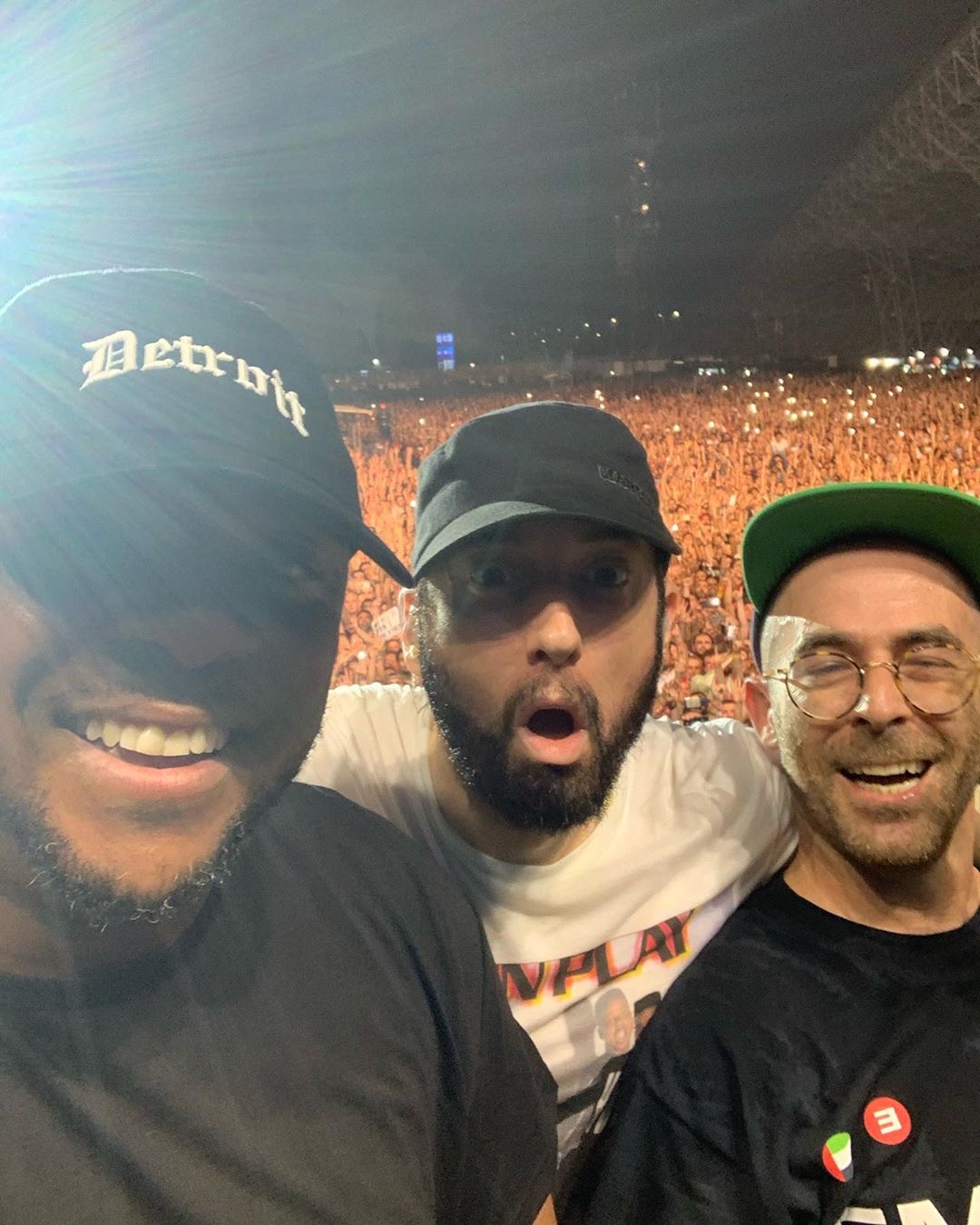 Além disso, foi o aniversário do DJ Alchemist, que completou 42 anos, e Eminem, Denaun e o público cantaram os parabéns para ele.
