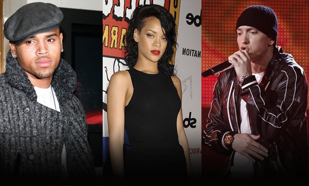 No snippet podemos ouvir o Eminem dizendo “É claro que eu vou ficar do lado do Chris Brown. Eu daria uma surra na vagabunda também se ela desse uma coceira no meu pau.”